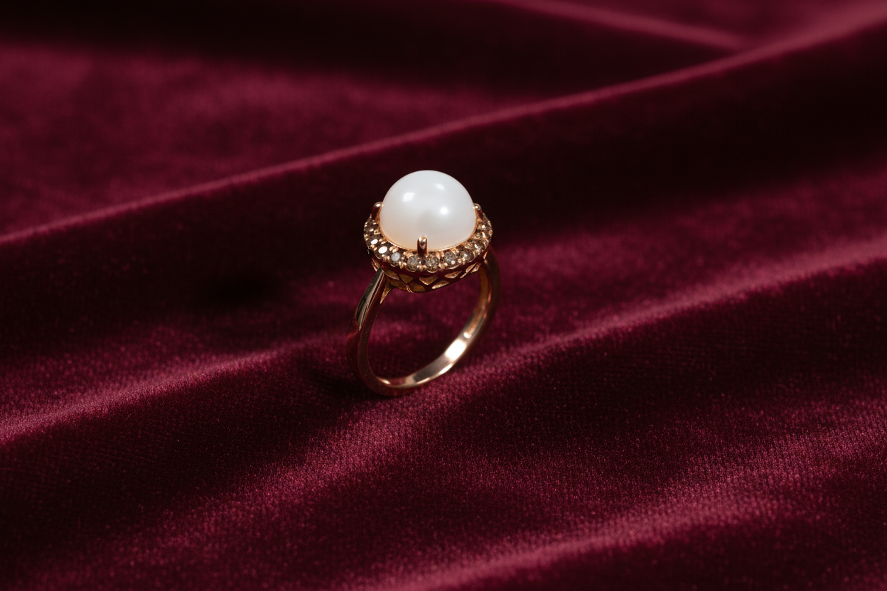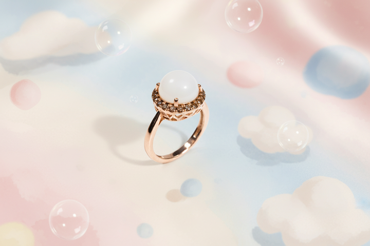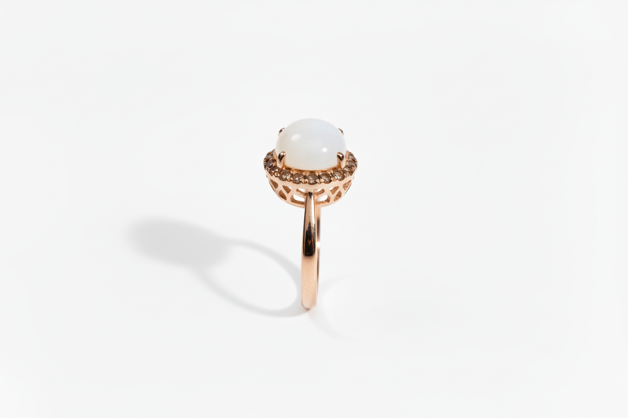 Anello con Pietra di Latte Materno a forma Tonda e Giro di Diamanti Brown in Oro Rosa 18 Carati