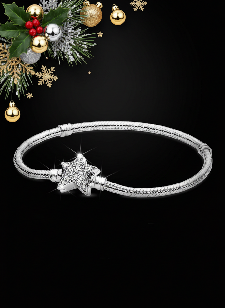 rma di stella ricoperta da scintillanti pietre di zirconia cubica incolori incastonate a pavé su entrambi i lati. Il gioiello può portare un massimo di 16-18 charm e pendenti. Indossalo da solo per un look semplice e discreto o abbinalo ad altri gioielli ispirati al cosmo per un look ultraterreno.