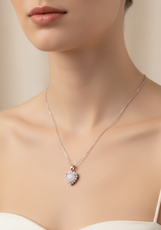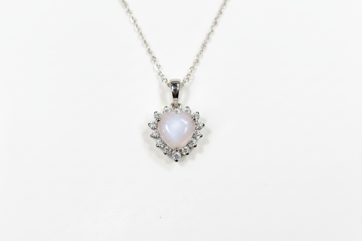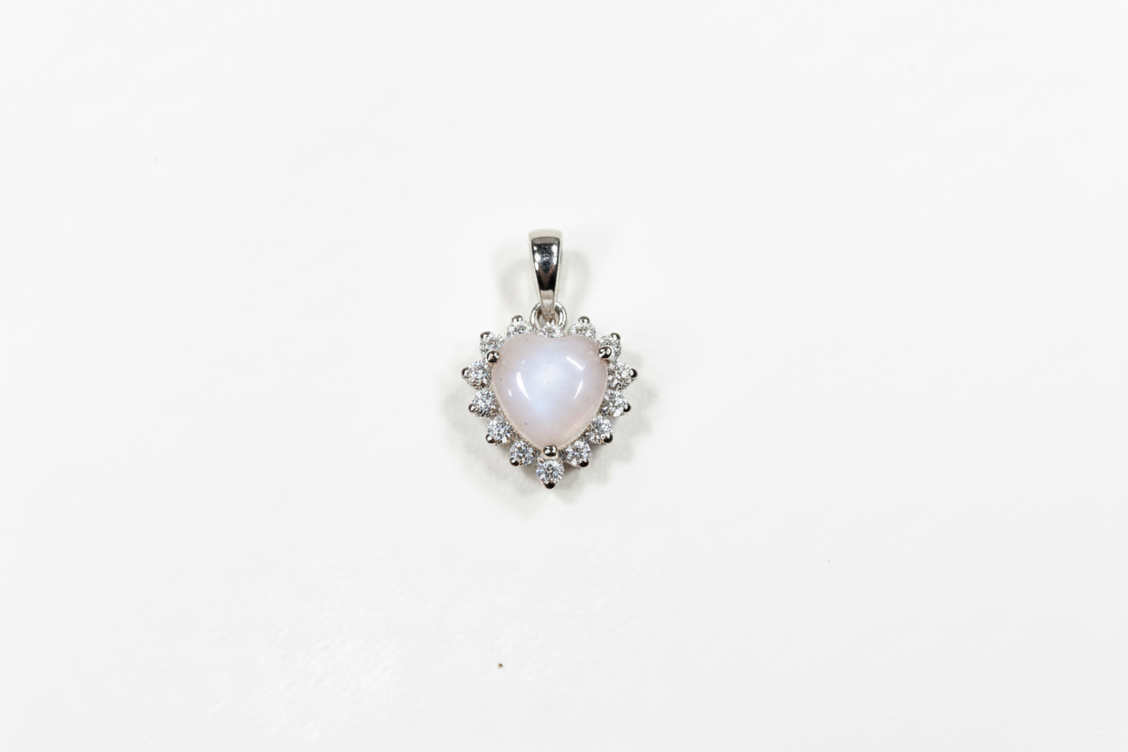 Ciondolo con pietra di latte materno a forma di cuore e giro di diamanti