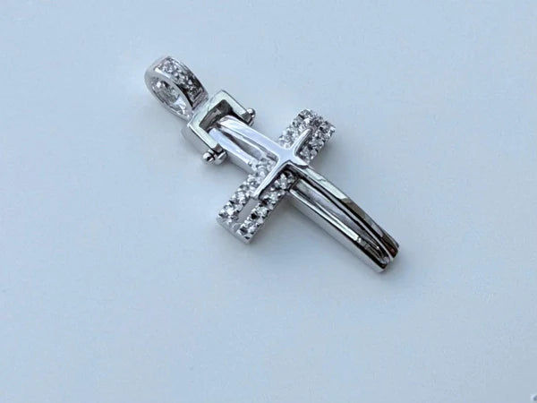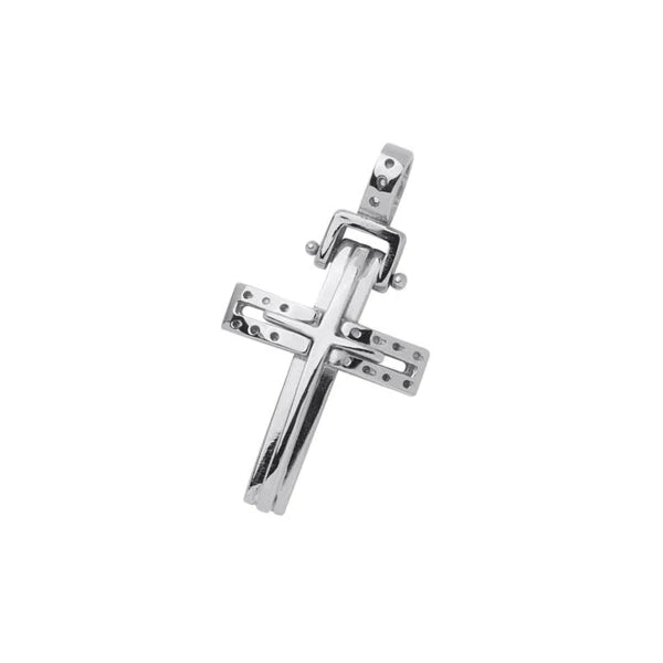 Elegante ciondolo croce da uomo alto 2,5 cm, impreziosito da diamanti che ne esaltano la raffinatezza. Il design fantasia dona un tocco moderno e distintivo, perfetto per chi cerca un accessorio che unisca stile e simbolismo. Un gioiello versatile, ideale da indossare ogni giorno o in occasioni speciali.