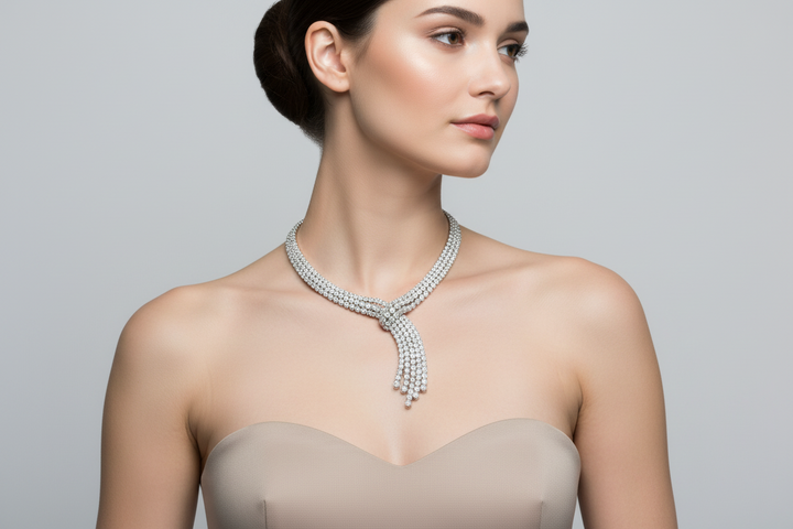 Collier in Oro Bianco a Mò di Sciarpa Tempestato di Diamanti