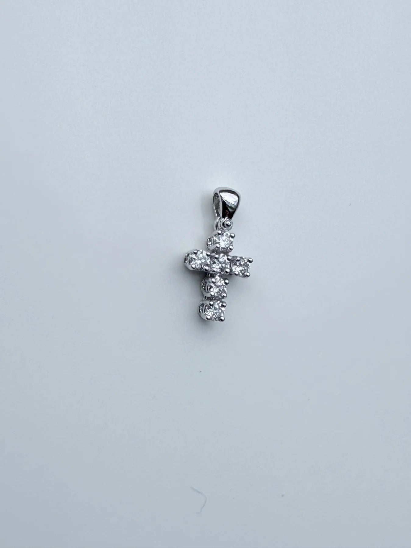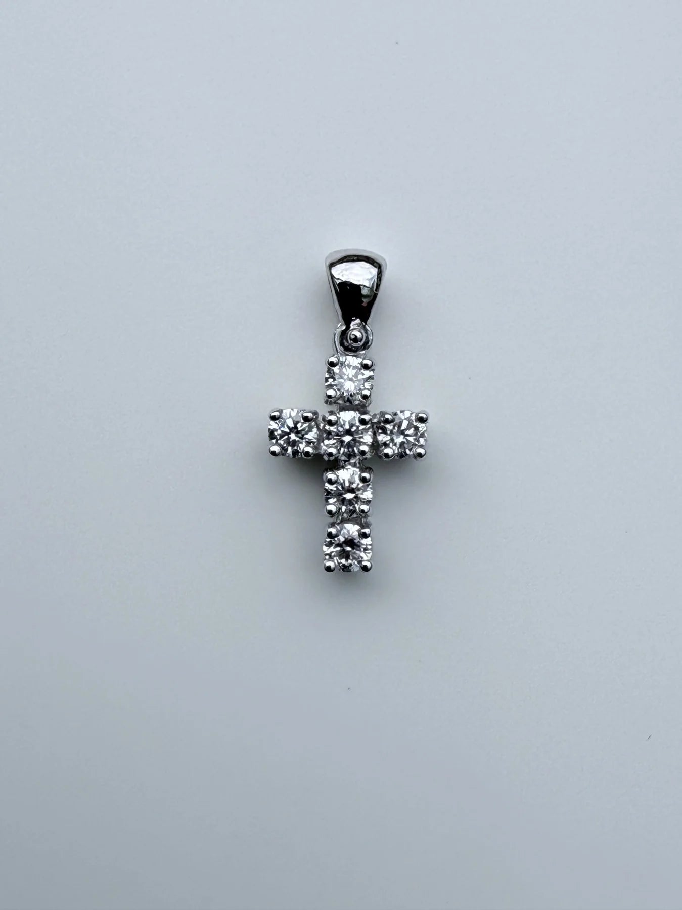 Croce classica con base quadrata e sei punte, caratterizzata da un design a griffe elegante.