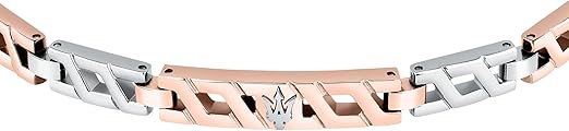 Maserati bracciale in acciaio, ip oro rosa di lunghezza 18,5 + 3 cm composto da una pratica chiusura a fibbia gioielleria. Maserati Jewels, perfetta sintesi di eleganza e sportività: un mix di italian style e passione per i motori che non conosce rivali.