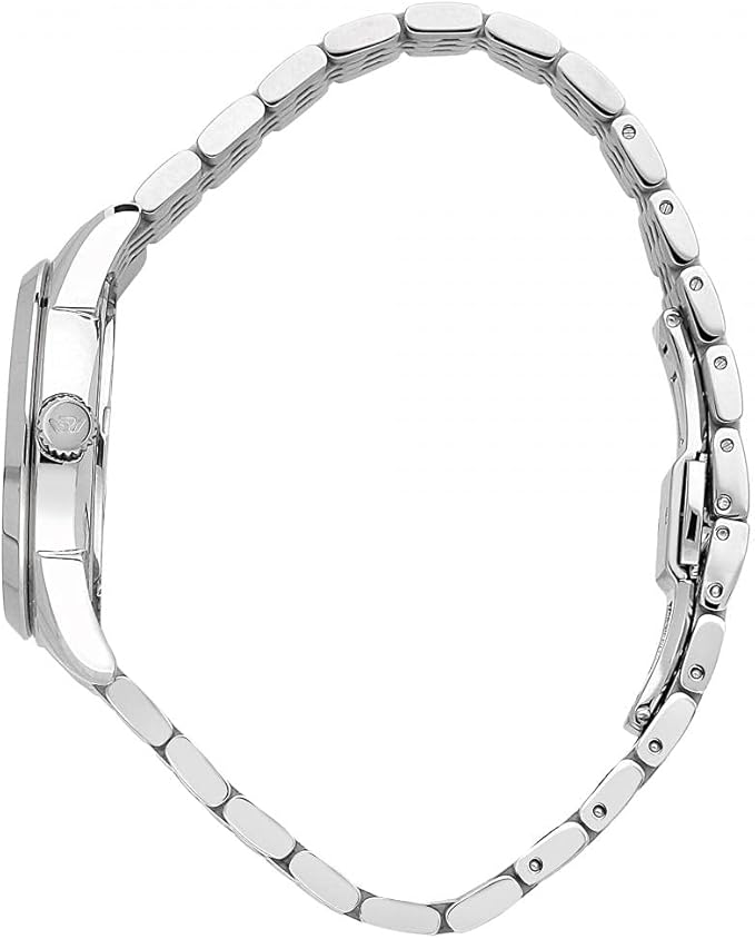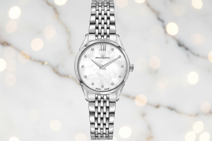 Philip Watch Orologio da donna, ref. R8253217501, Collezione ROMA, in acciaio, diamanti naturali selezionati h/i, movimento quarzo, funzioni solo tempo, 3h. L'orologio è caratterizzato da un cinturino in acciaio inossidabile, con fibbia a doppia farfalla con pulsanti di sicurezza e logo applicato. La cassa misura 32mm, incornicia un quadrante bianco madreperla e monta un vetro zaffiro antiriflesso. Resistenza all'acqua fino a 5 ATM. La collezione ROMA, espressione estrema di armonia estetica e precisione, diventa protagonista del mondo Classic di Philip Watch. Movimenti automatici e prestigiose complicazioni di manifattura svizzera, si uniscono a uno stile pulito e attento ai dettagli che esprimono l'eleganza senza tempo del brand, eterna come la città a cui rendono omaggio i nuovi segnatempo per Lui e per Lei.